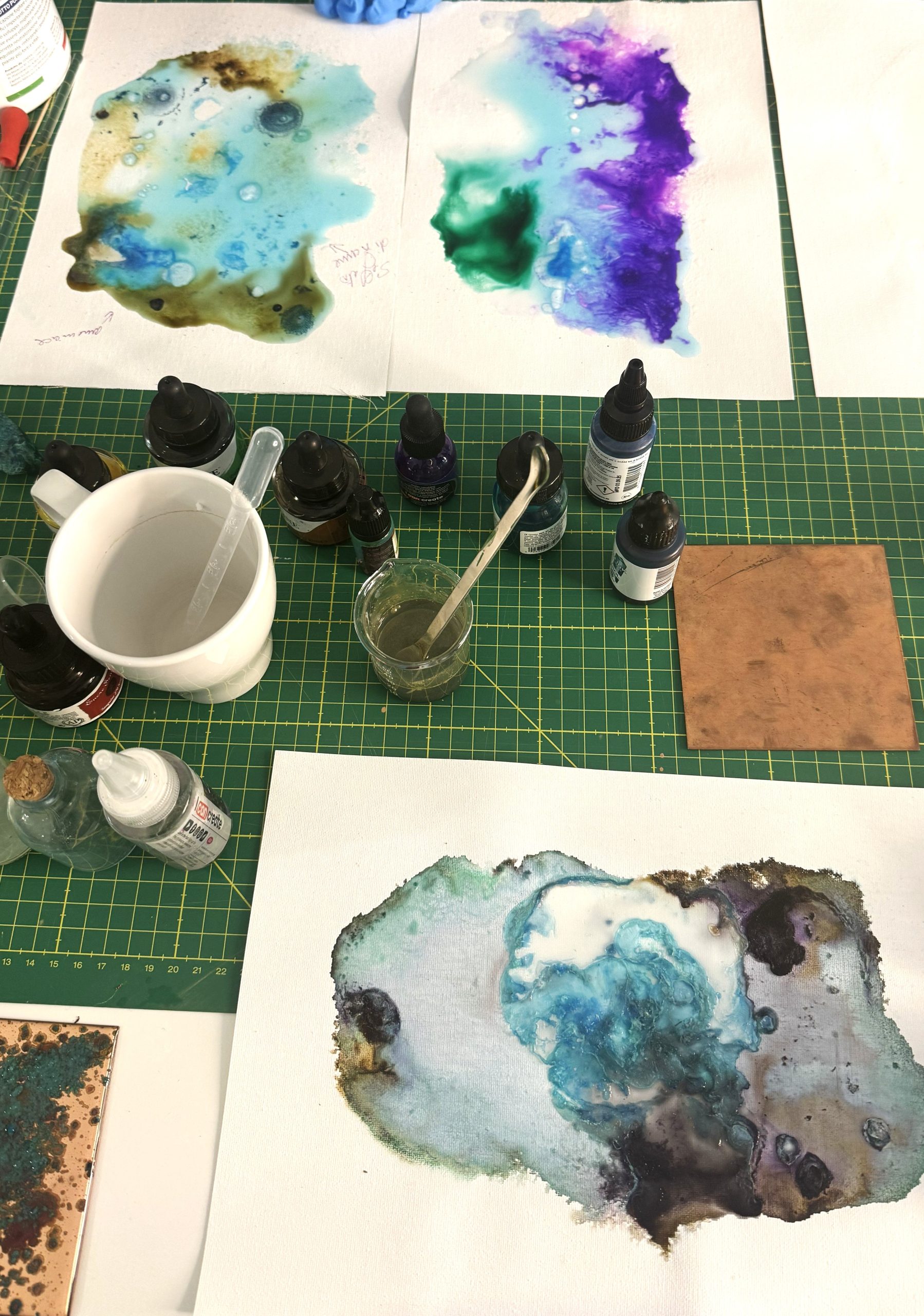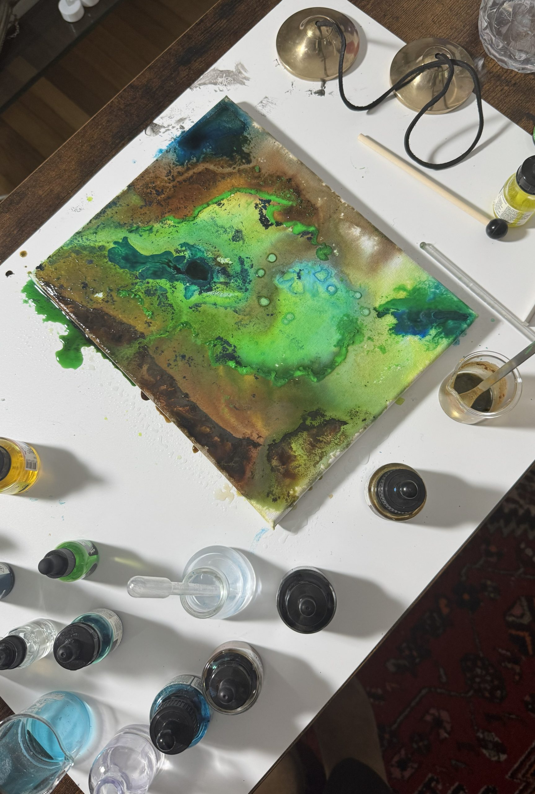 La pittura alchemica è una pratica artistica che ho sperimentato  in cui colore e chimica si uniscono, sfruttando i miei studi interrotti in Scienze dei Materiali.